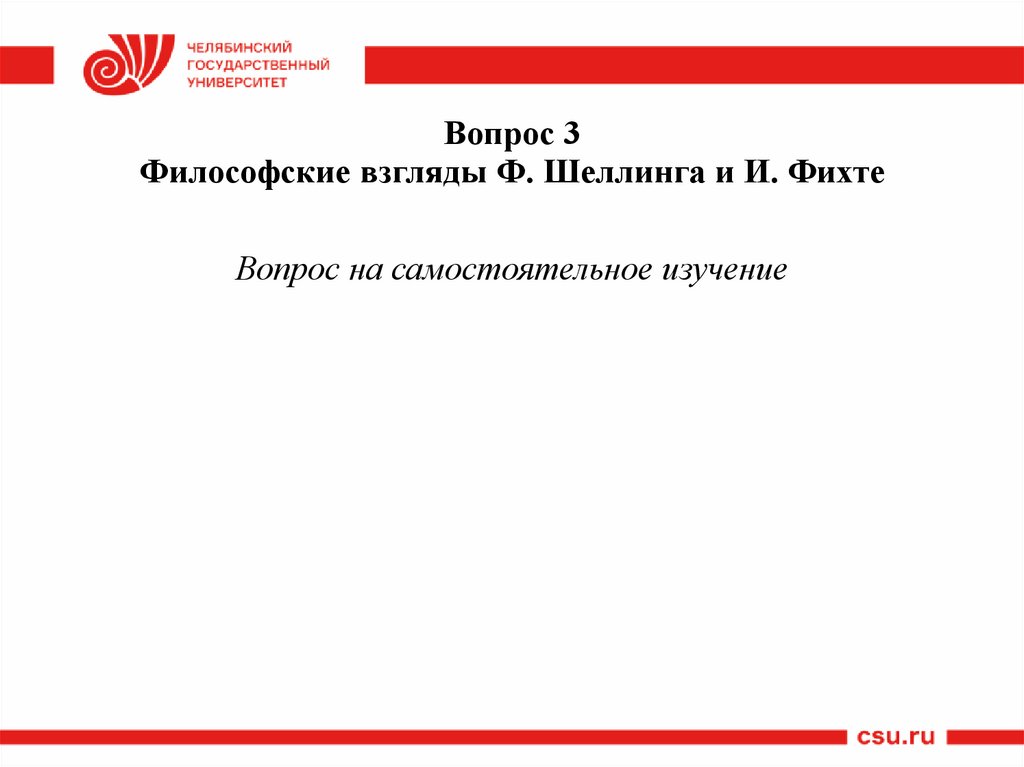 Философские взгляды Ф. Шеллинга и И. Фихте