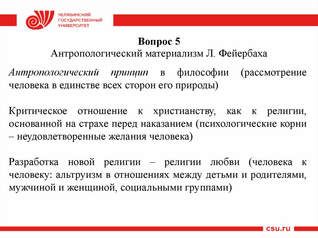 Вопрос 5Антропологический материализм Л. Фейербаха