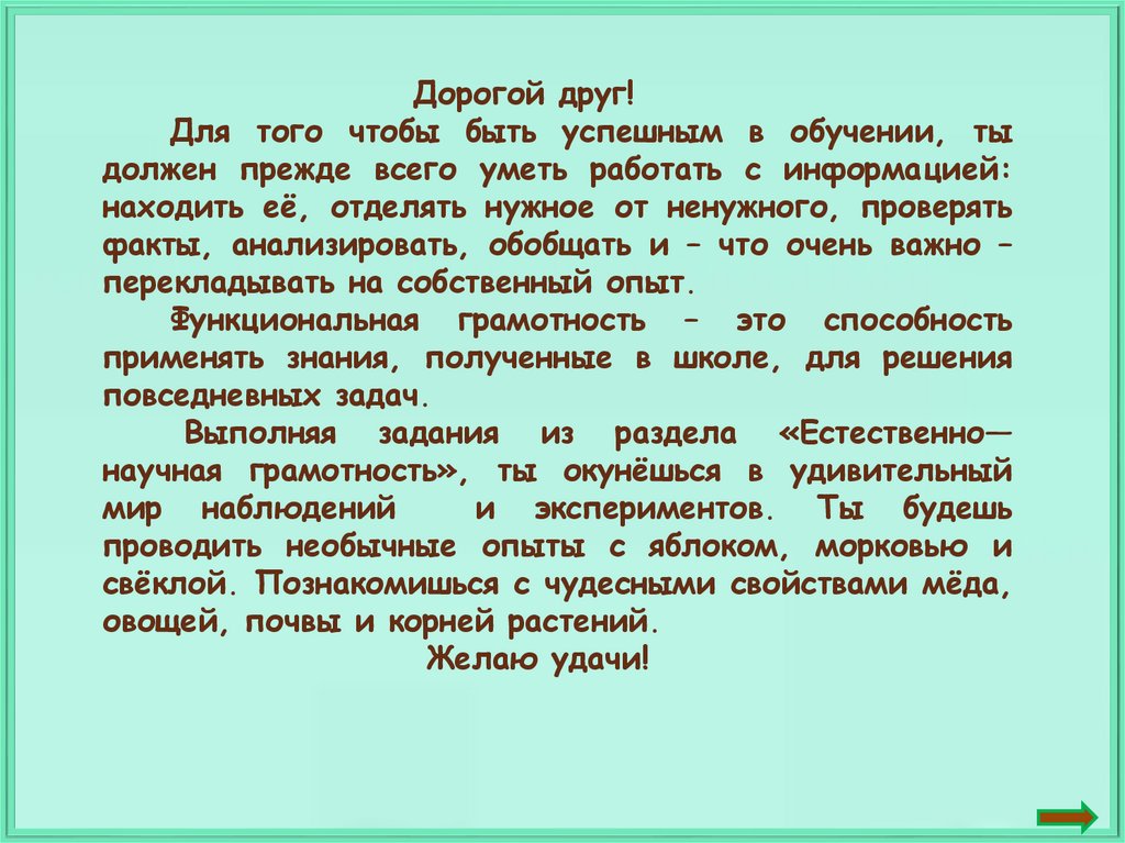 Дорогой друг!Для того чтобы быть успешным в обучении, ты