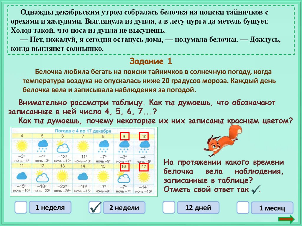 Какие характеристики погоды отражены в наблюдениях белочки?