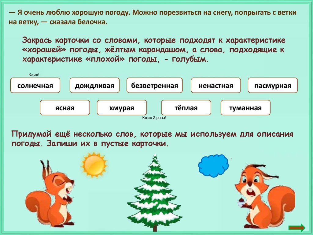 «хорошей» погоды, жёлтым карандашом, а слова, подходящие к