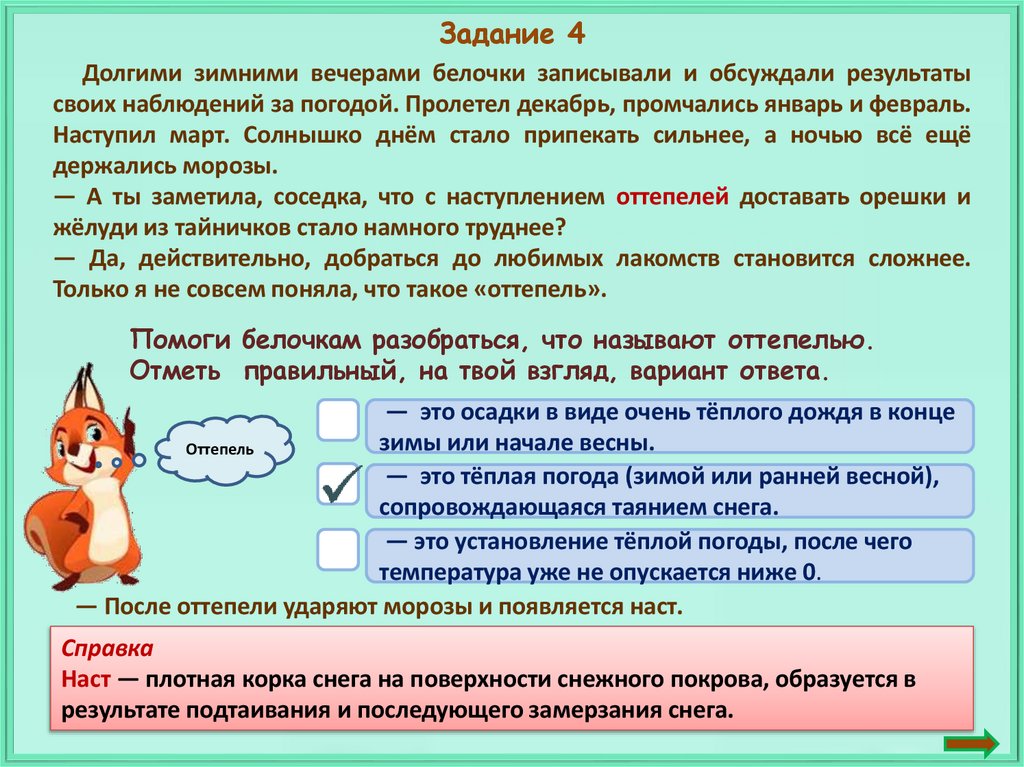 Как ты можешь объяснить слова белки о том, что после оттепели