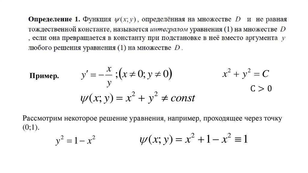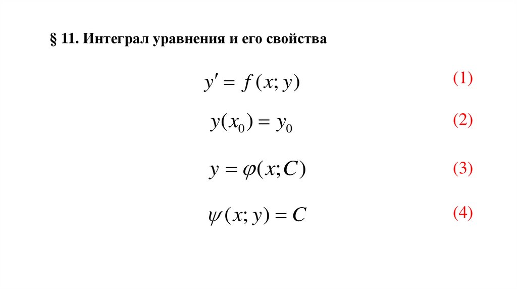 § 11. Интеграл уравнения и его свойстваy f ( x; y )