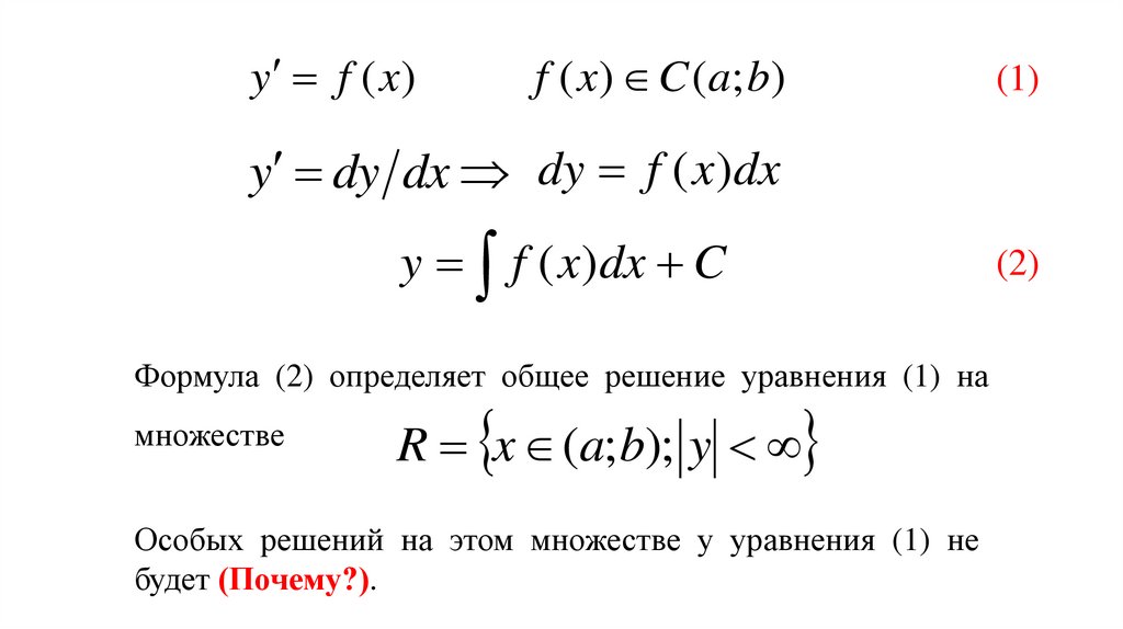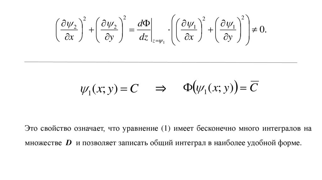 Это свойство означает, что уравнение (1) имеет бесконечно много интегралов на