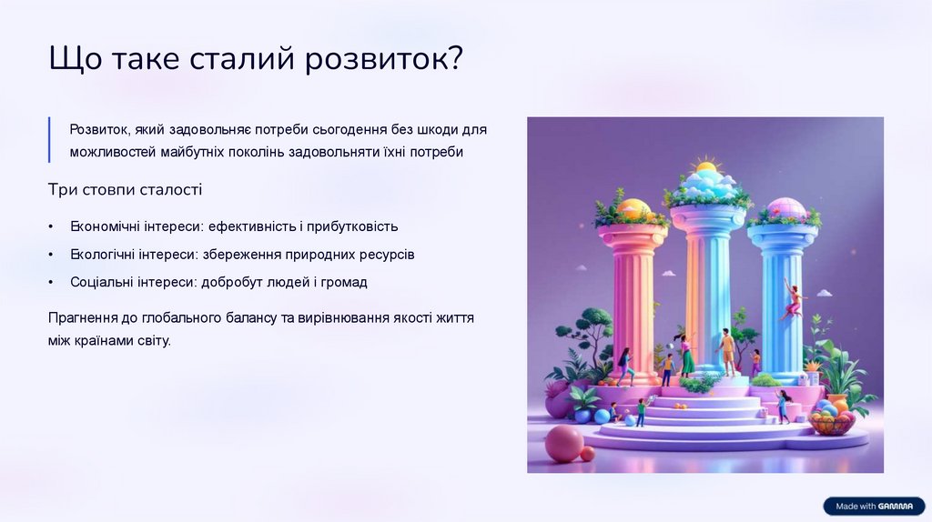 Що таке сталий розвиток?Розвиток, який задовольняє потреби сьогодення без шкоди для
