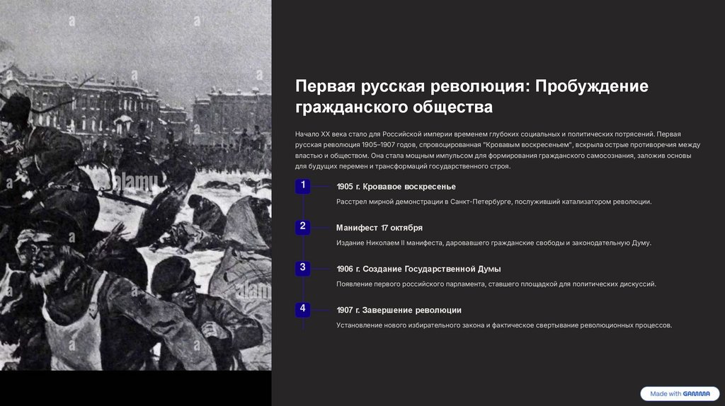 Расстрел мирной демонстрации в Санкт-Петербурге, послуживший катализатором революции.