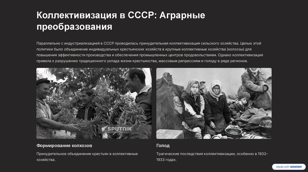 повышения эффективности производства и обеспечения промышленных центров продовольствием. Однако коллективизация