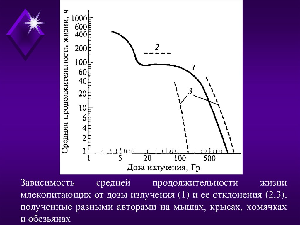 млекопитающих от дозы излучения (1) и ее отклонения (2,3),