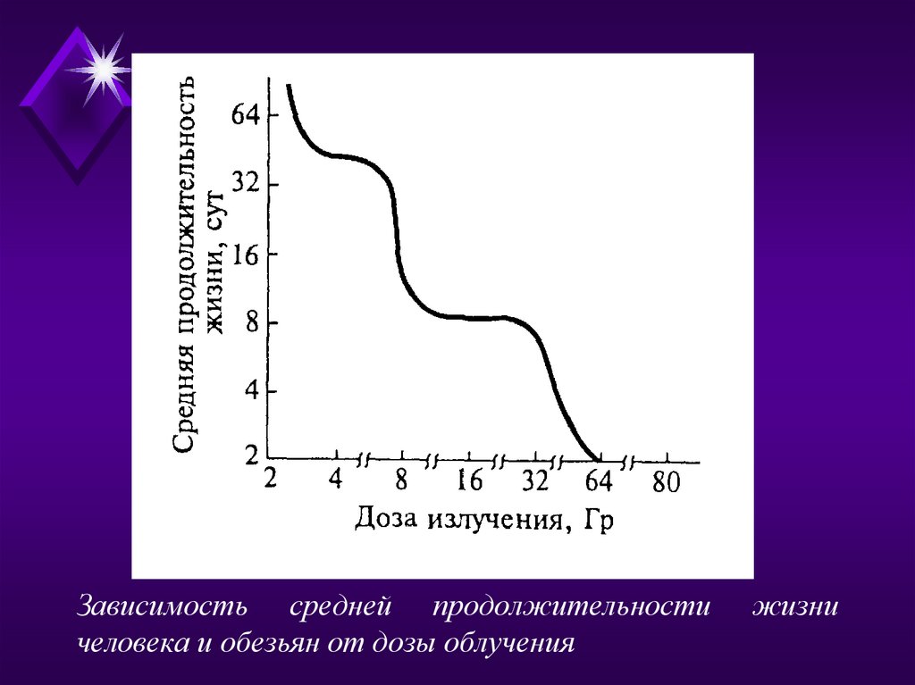 Зависимость средней продолжительностичеловека и обезьян от дозы облучения