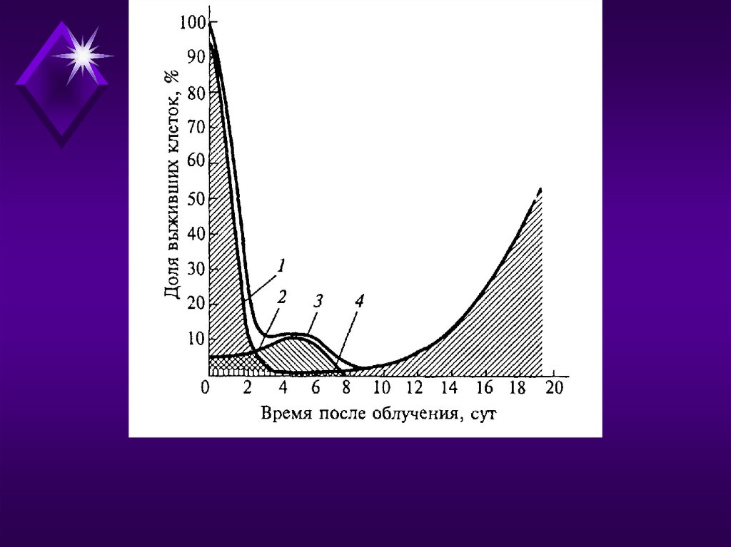 Dq стволовых клеток костного мозга составляет менее 1 ГрDq стволовых клеток эпителия тонкой кищки составляет 4 Гр