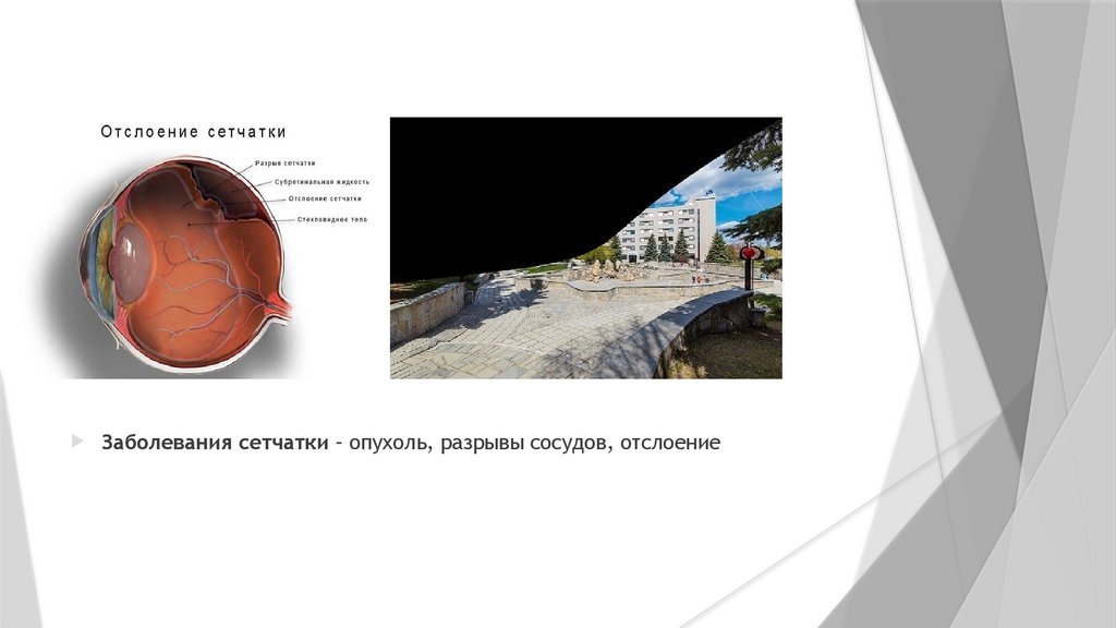 Заболевания сетчатки – опухоль, разрывы сосудов, отслоение12.