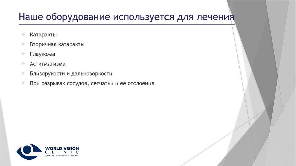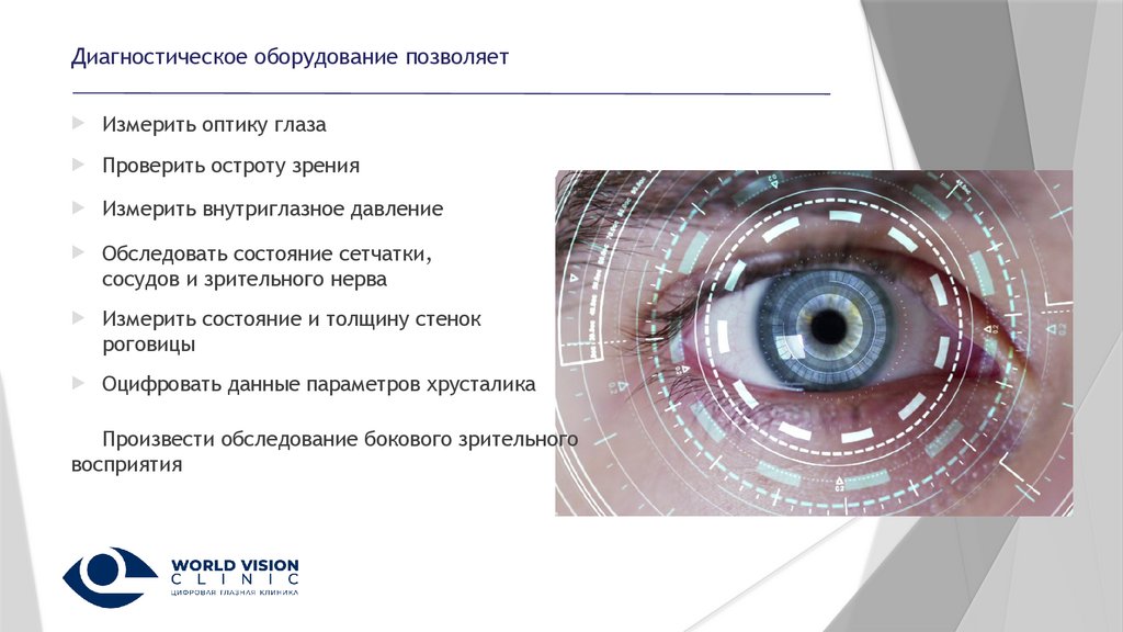 Диагностическое оборудование позволяетИзмерить оптику глаза