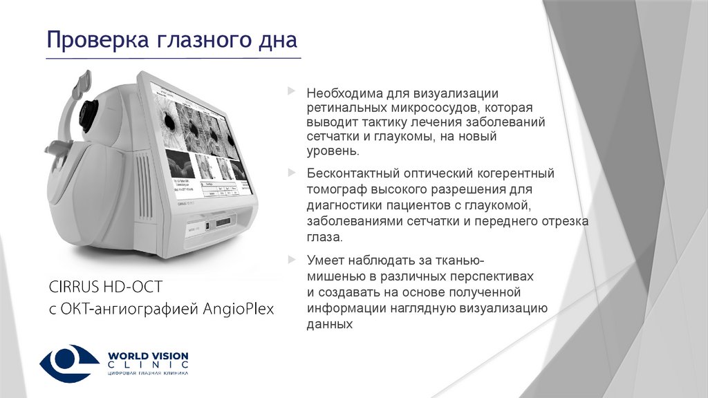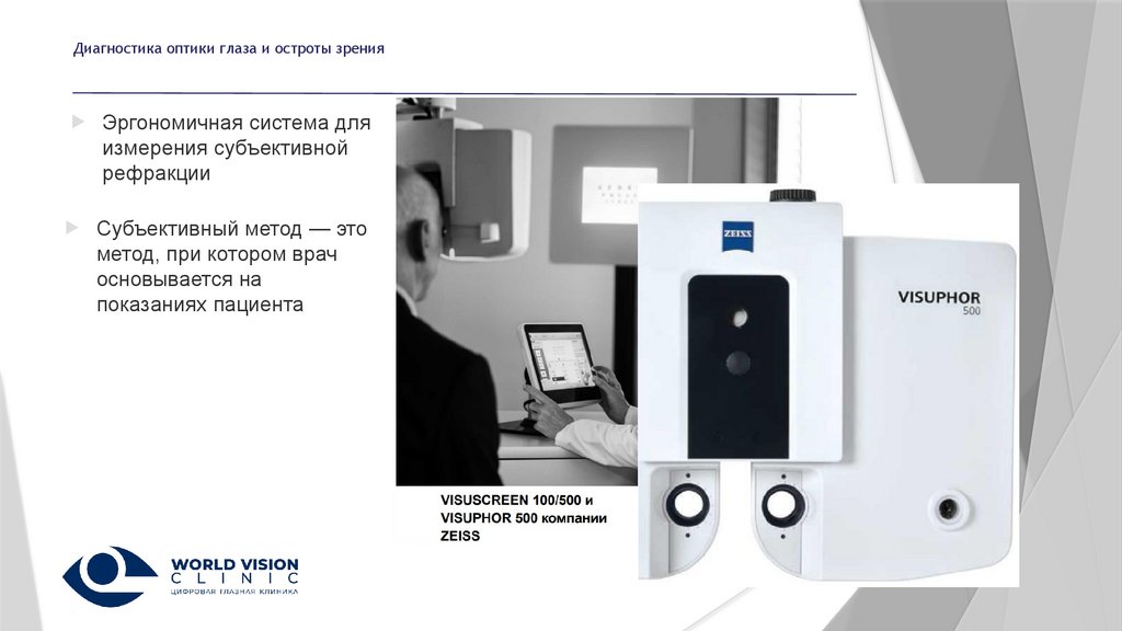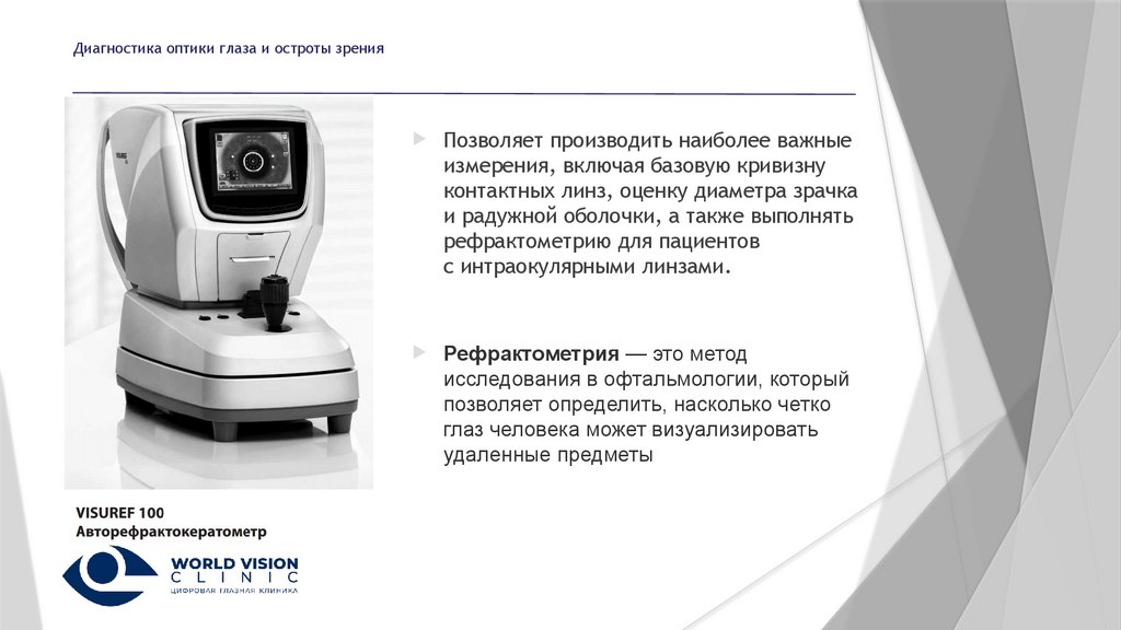 Диагностика оптики глаза и остроты зренияПозволяет производить наиболее важные