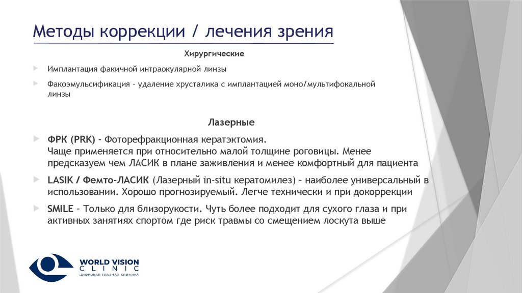 ФРК (PRK) – Фоторефракционная кератэктомия.