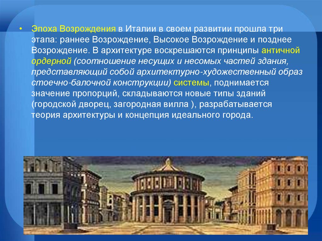 Возрождение. В архитектуре воскрешаются принципы античной