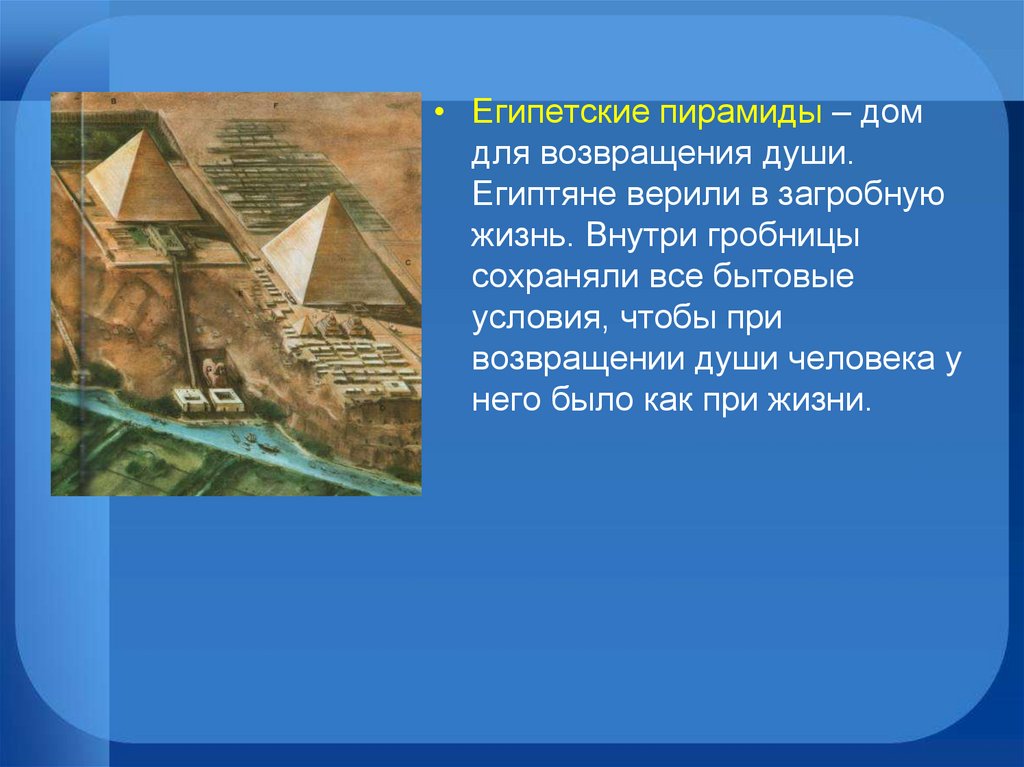 • Египетские пирамиды – домдля возвращения души.