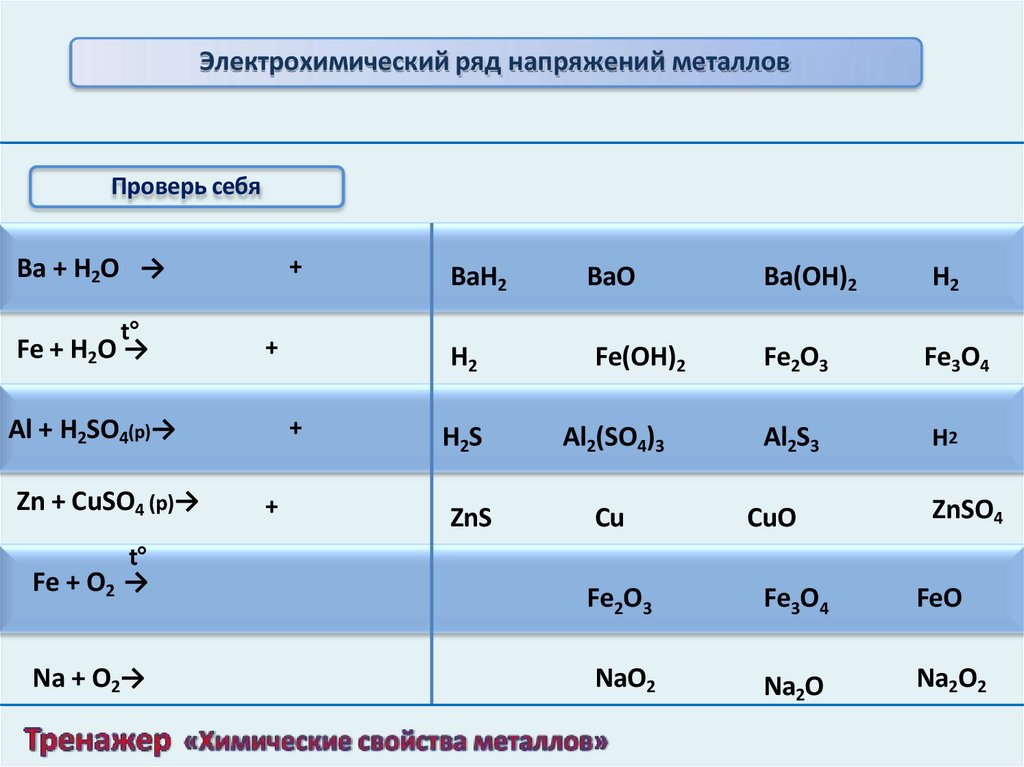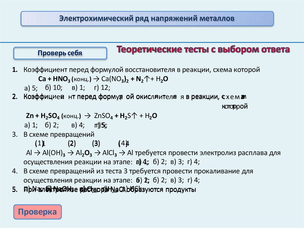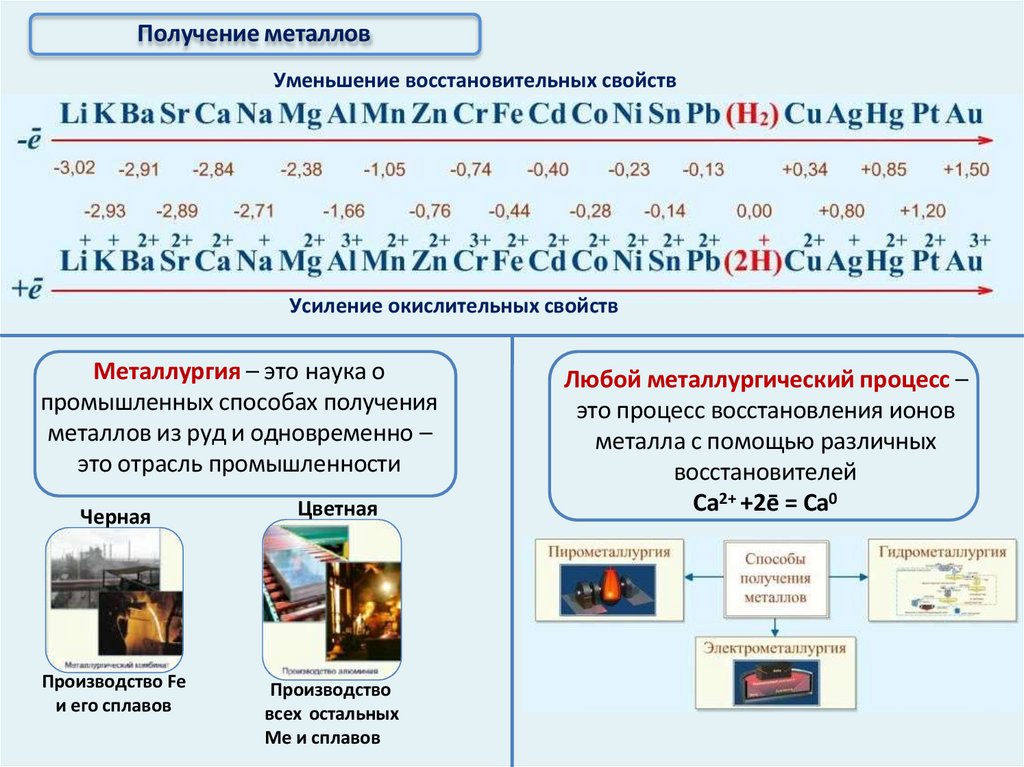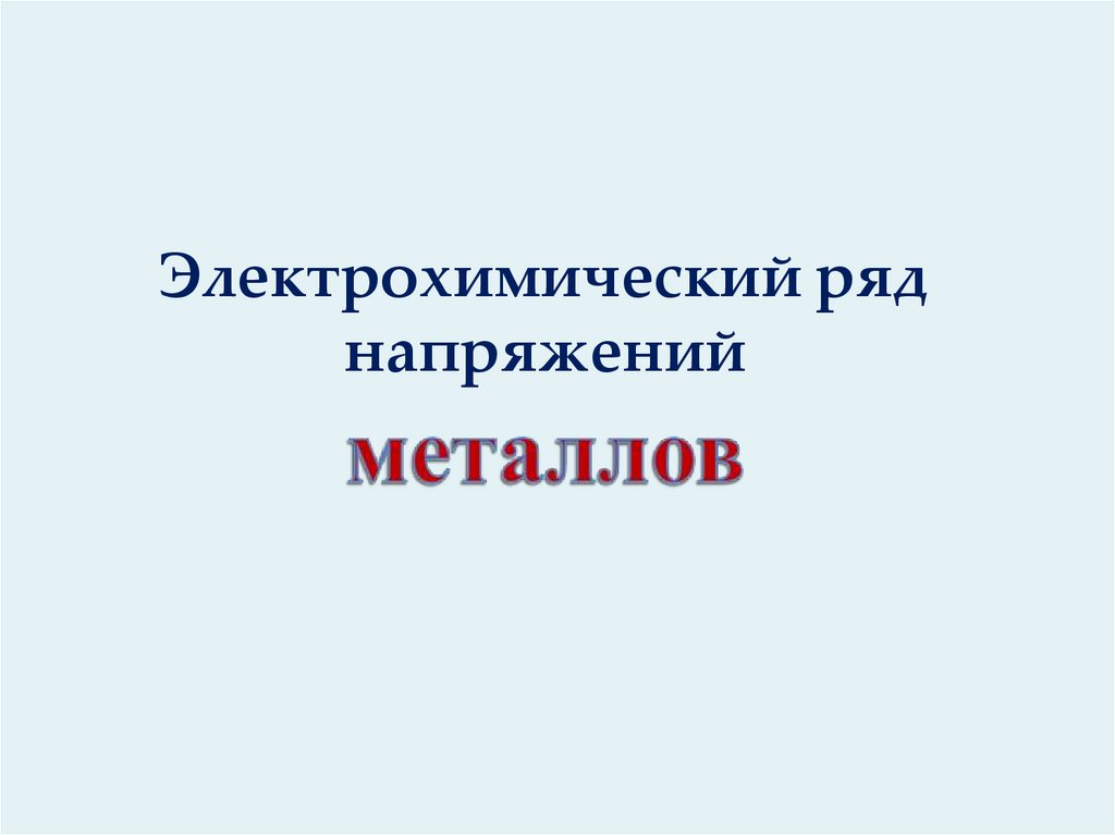 Электрохимический ряд напряжений металловУменьшение восстановительных свойств