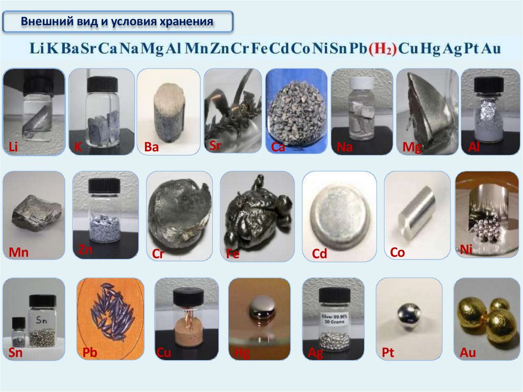 Li K Ba Sr Ca Na Mg Al Mn Zn Cr Fe Cd Co Ni Sn Pb (Н2) Cu Hg