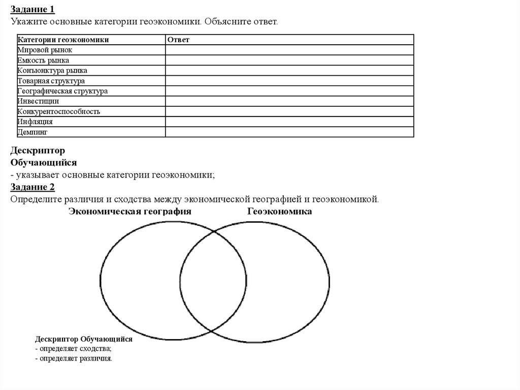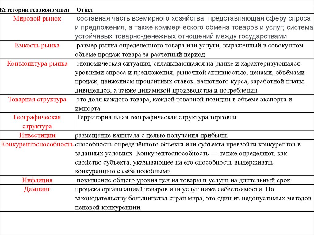 Задание 1Укажите основные категории геоэкономики. Объясните ответ.
