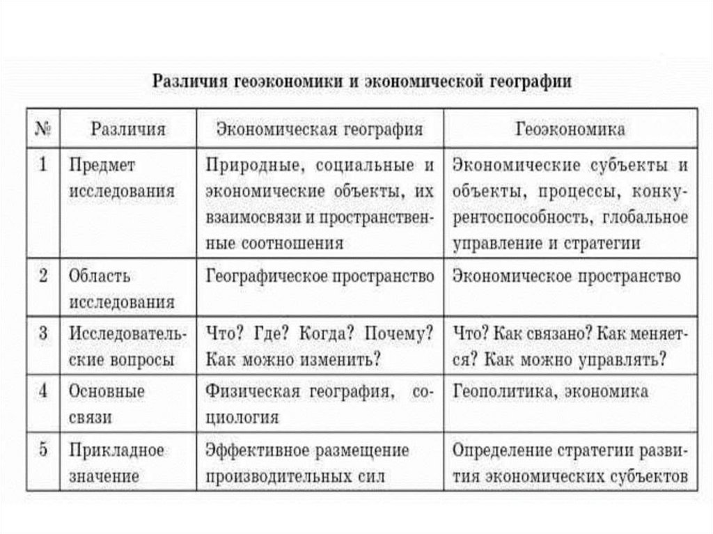 Определите различия и сходства между экономической географией и геоэкономикой.