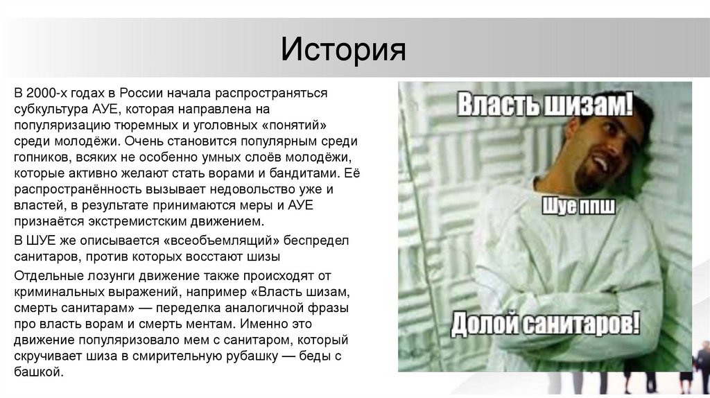 организацию «АУЕ». Ведётся от имени шизофреников,