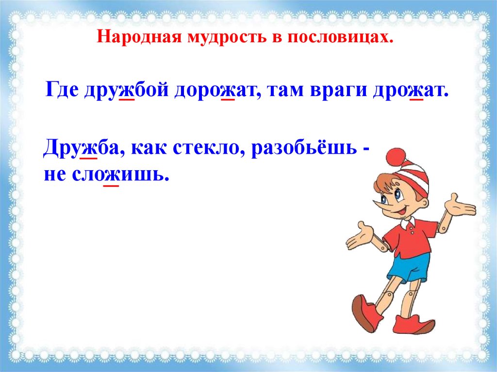 Народная мудрость в пословицах.Где дружбой дорожат, там враги дрожат.