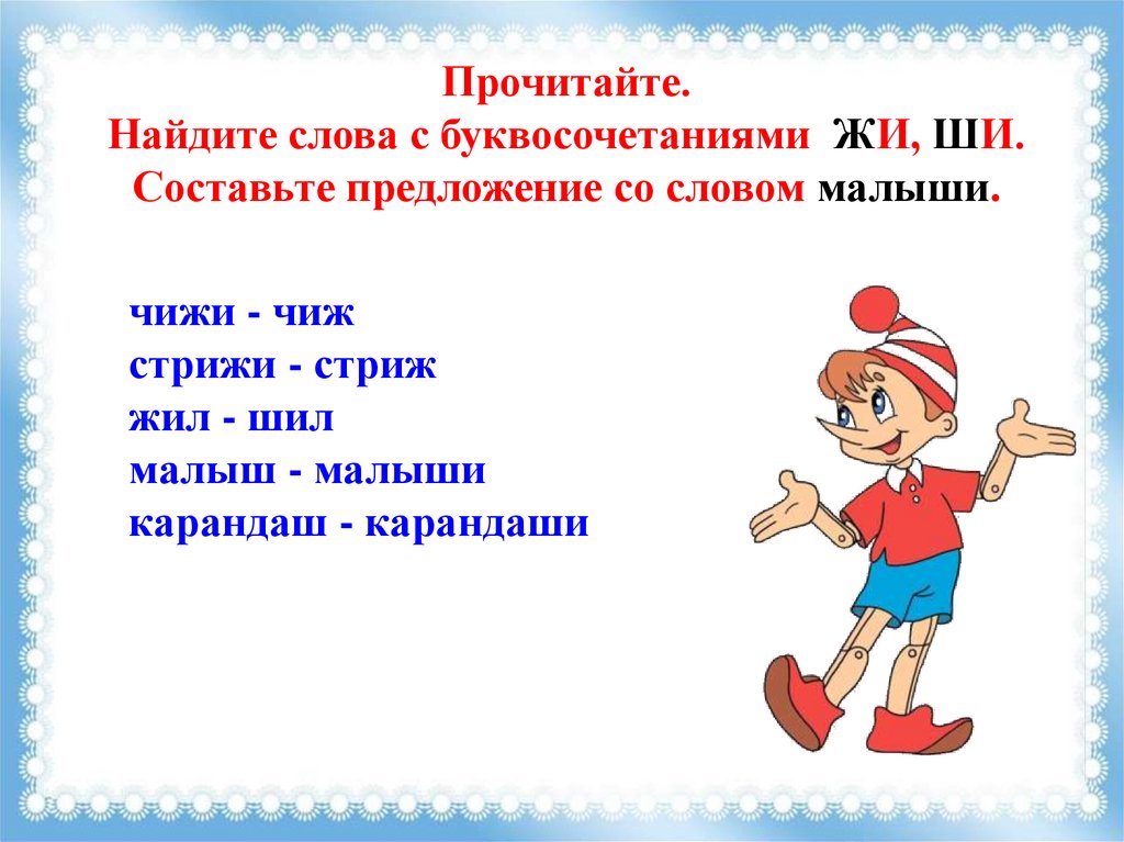 Прочитайте.Найдите слова с буквосочетаниями ЖИ, ШИ.
