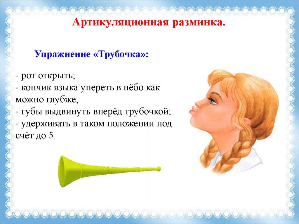 Артикуляционная разминка.Упражнение «Трубочка»: