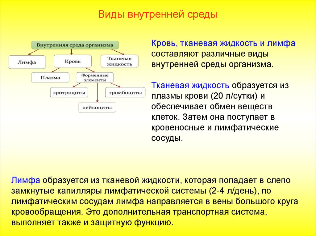 Виды внутренней средыКровь, тканевая жидкость и лимфа