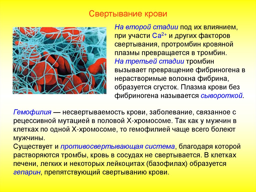 гемостазе (свертывании крови).
