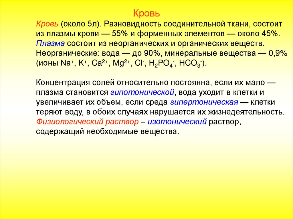 (ионы Na+, K+, Ca2+, Mg2+, Cl-, H2PO4-, HCO3-).