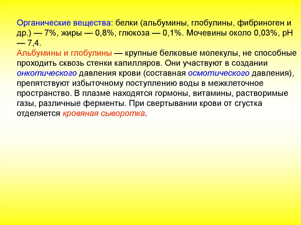 пространство. В плазме находятся гормоны, витамины, растворимые