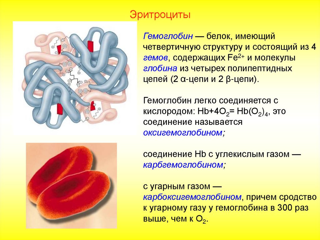 ЭритроцитыГемоглобин — белок, имеющий