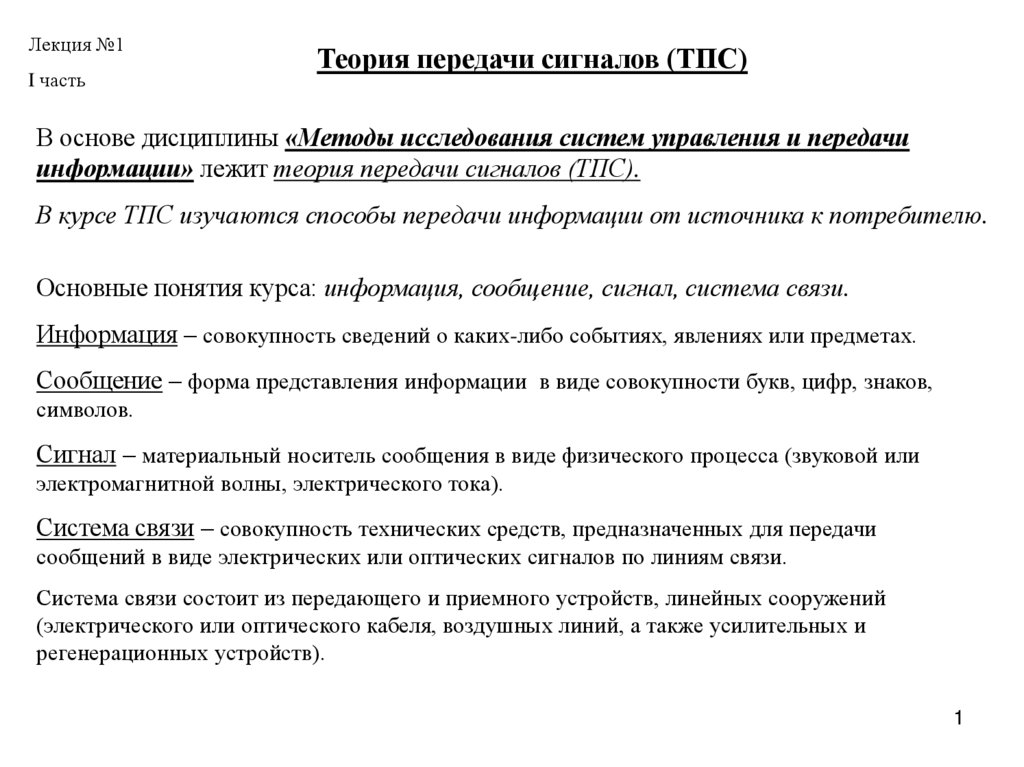 В курсе ТПС изучаются способы передачи информации от источника к потребителю.