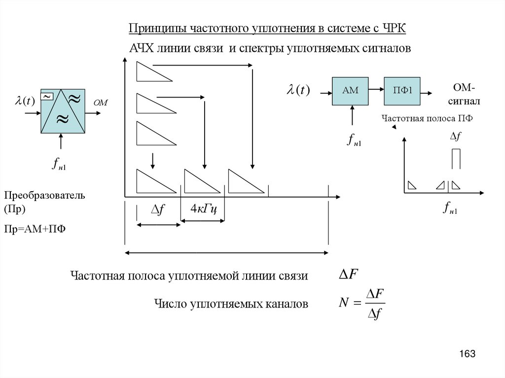 Принципы частотного уплотнения в системе с ЧРКАЧХ линии связи и спектры уплотняемых сигналов