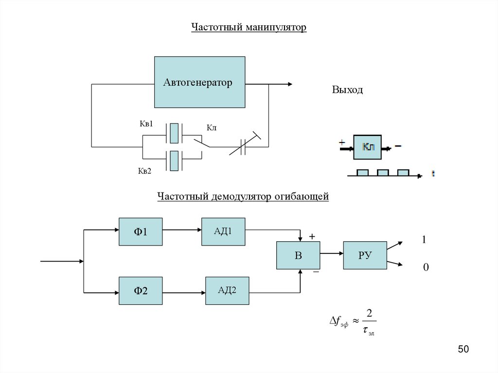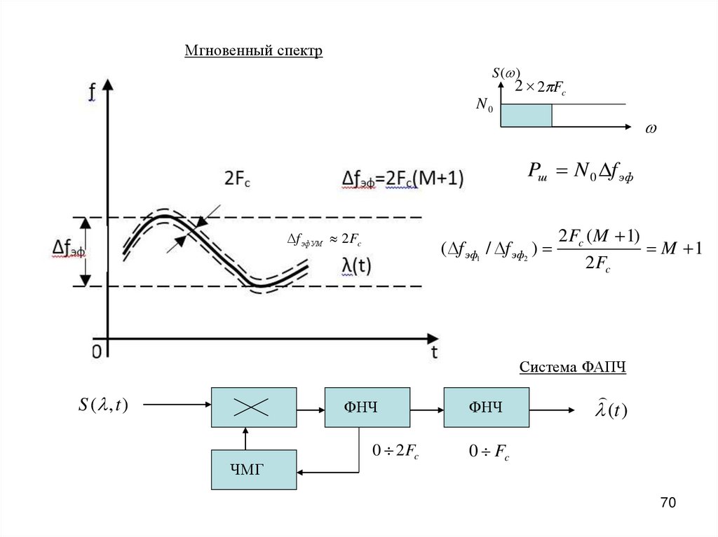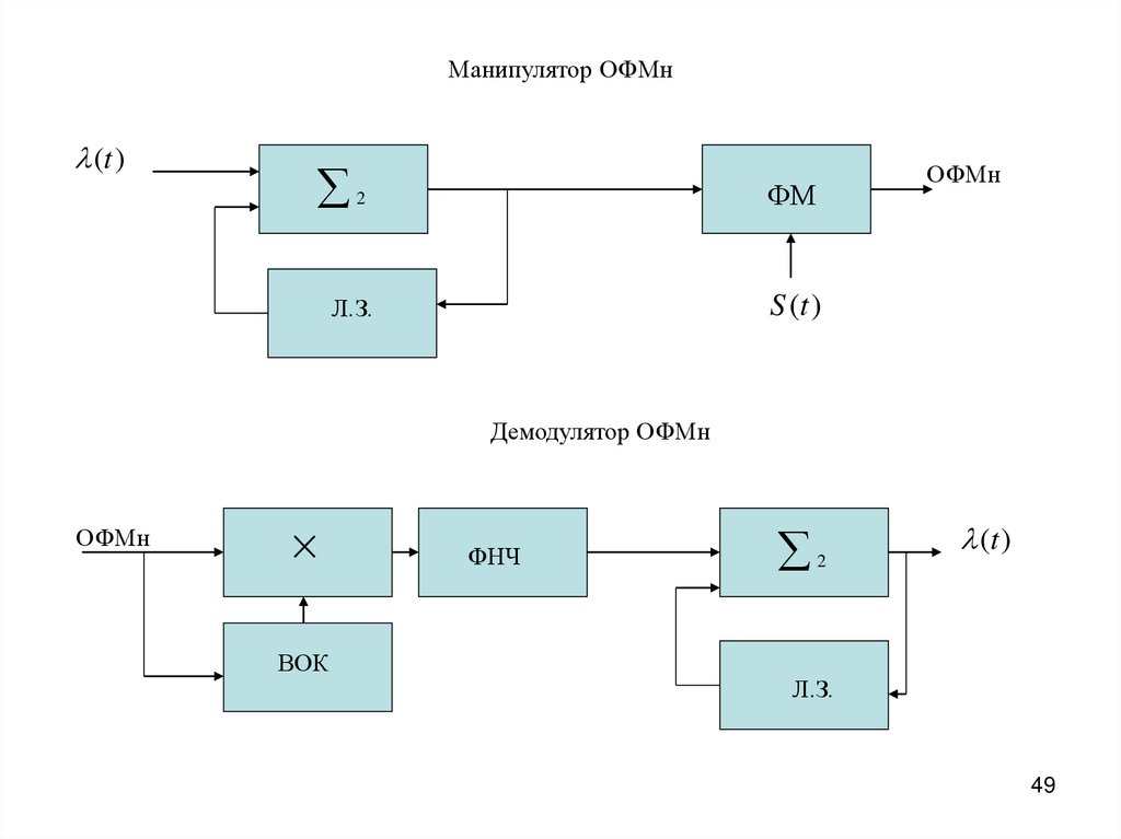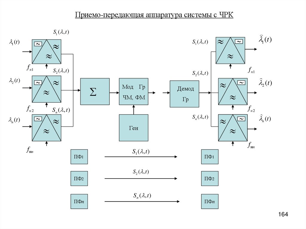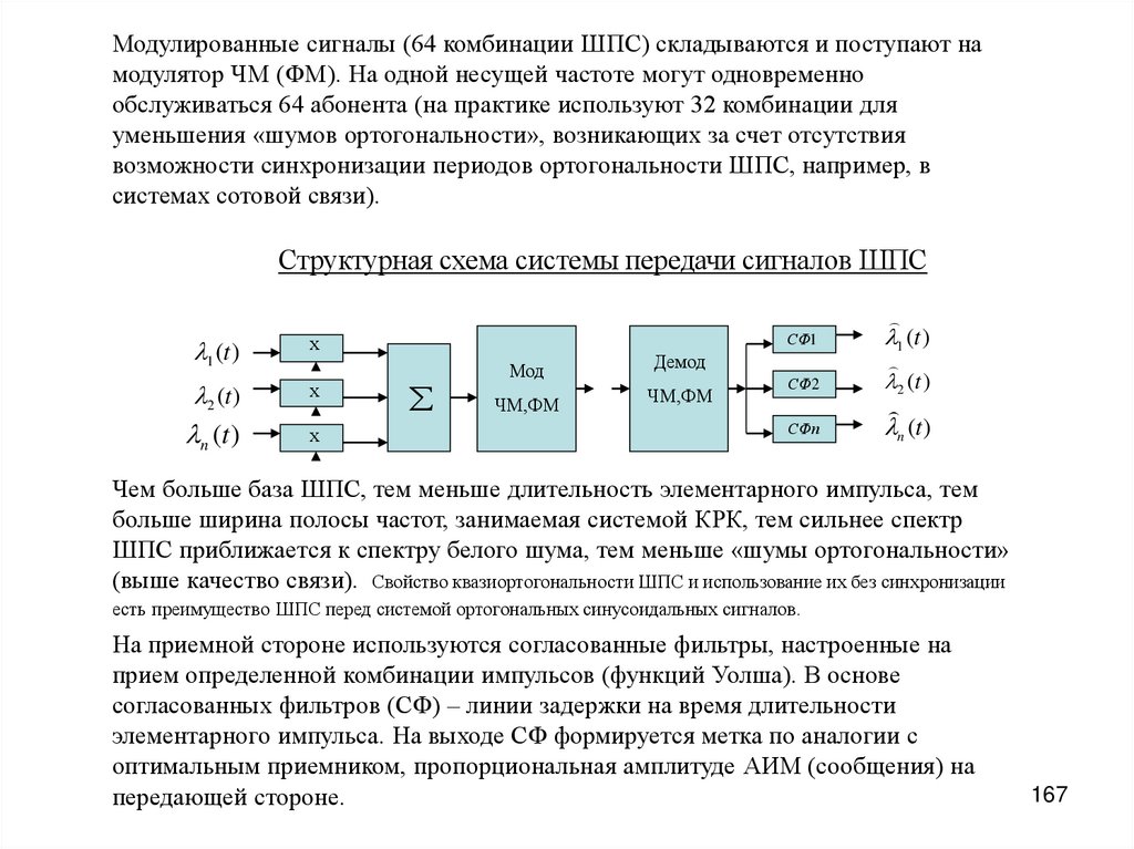 Модулированные сигналы (64 комбинации ШПС) складываются и поступают намодулятор ЧМ (ФМ). На одной несущей частоте могут одновременно