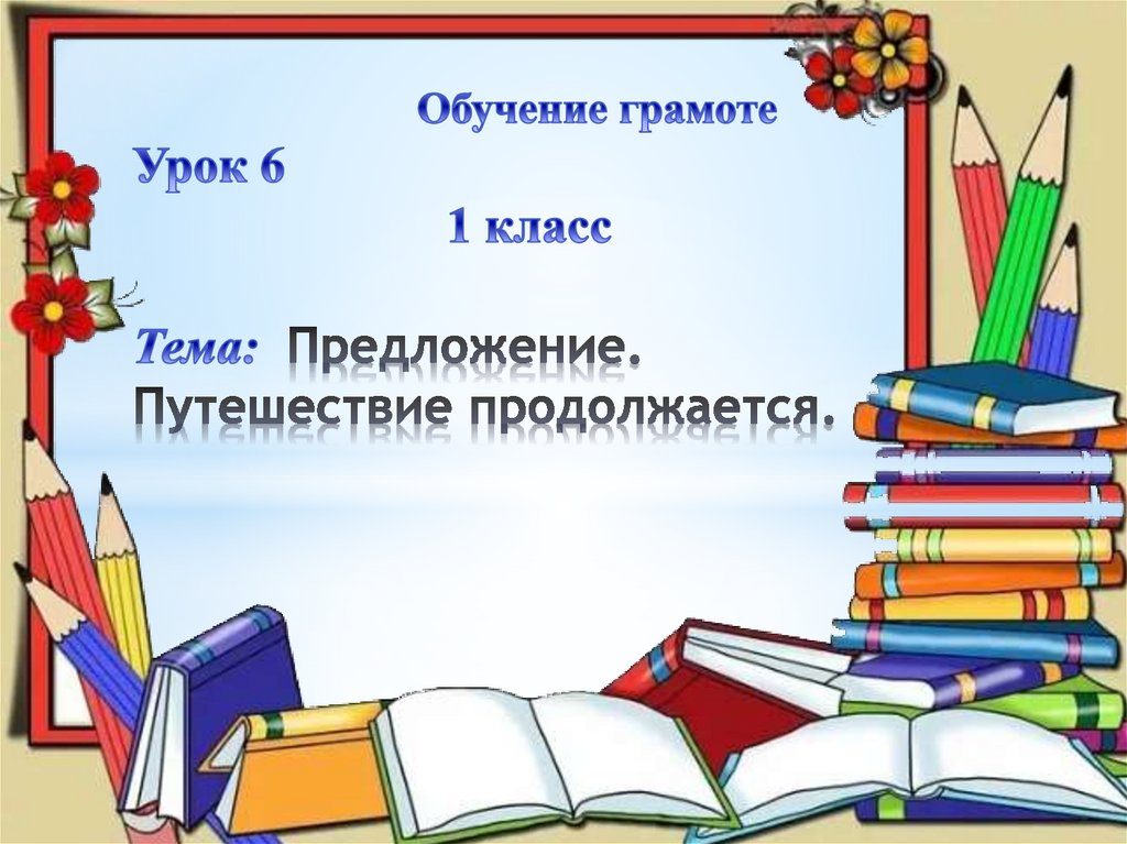 1. Обучение грамоте Урок 6 1 класс Тема: Предложение. Путешествие продолжается.