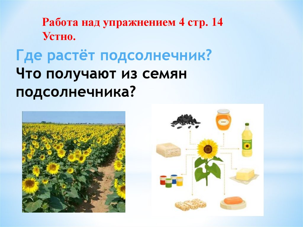 Работа над упражнением 4 стр. 14Подсолнечник растёт в поле