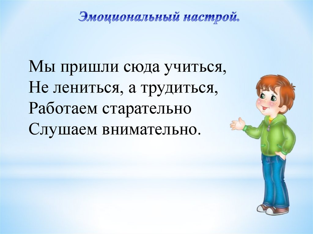 Мы пришли сюда учиться,Не лениться, а трудиться,