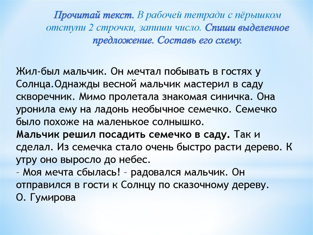 Найди в тексте предложения, соответствующие схемам.