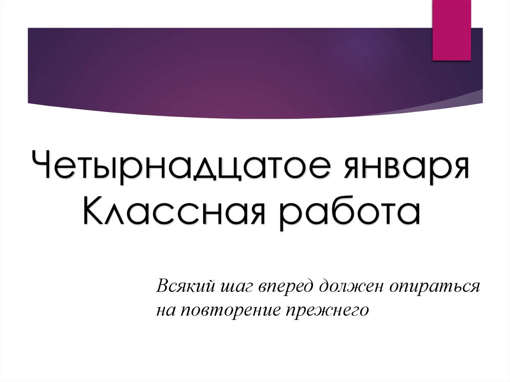 Четырнадцатое январяКлассная работа