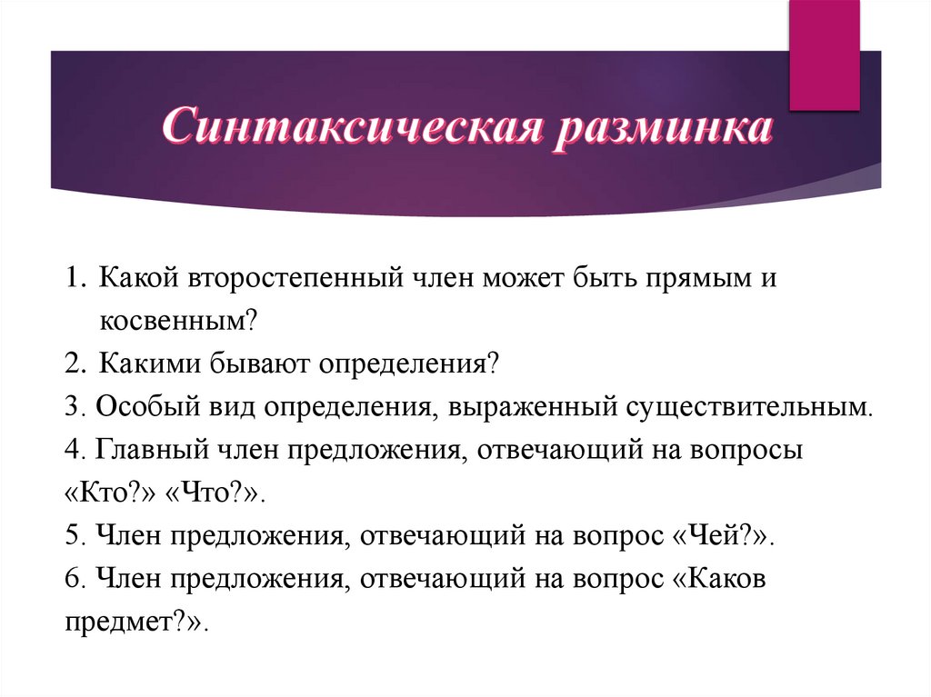 1. Какой второстепенный член может быть прямым икосвенным?