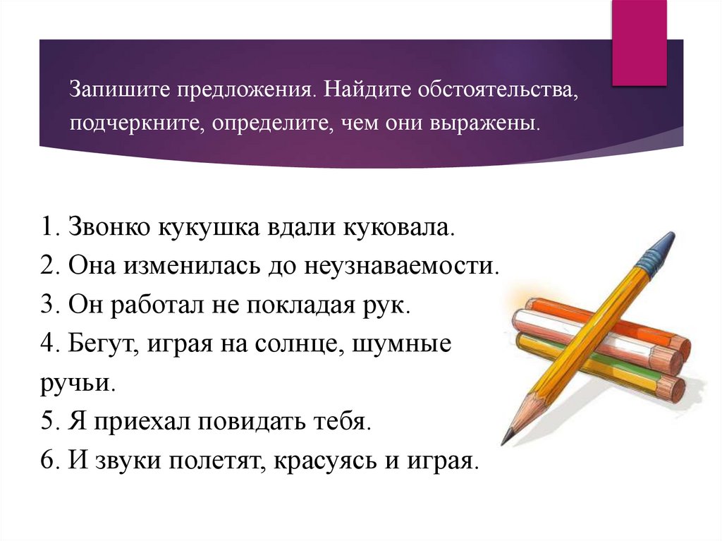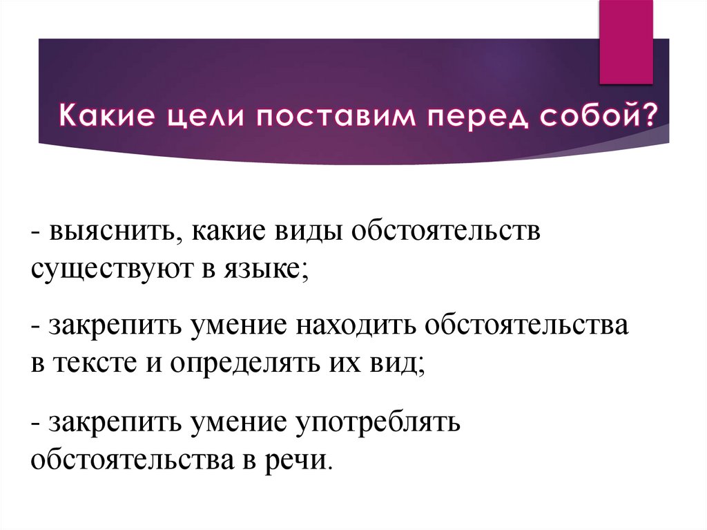 - закрепить умение находить обстоятельства