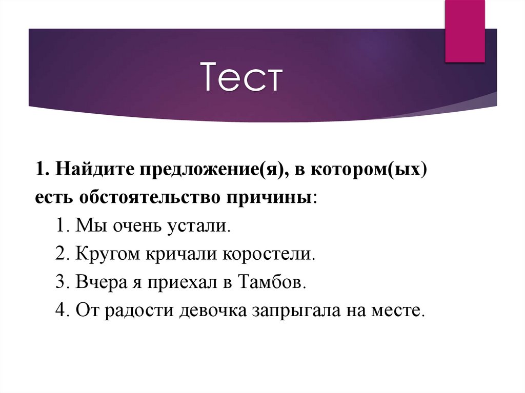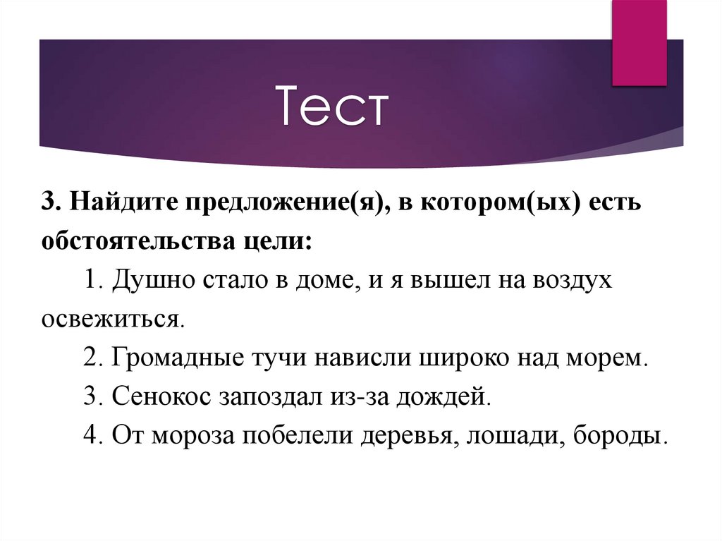 Тест1. Найдите предложение(я), в котором(ых)