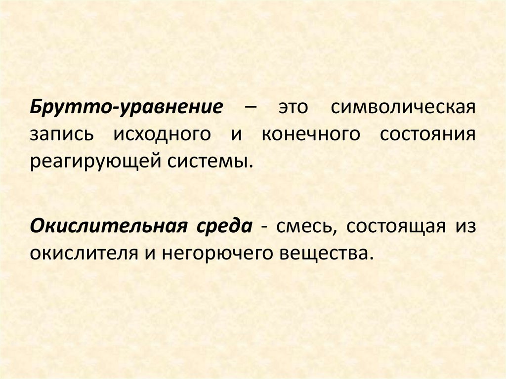 Брутто-уравнение – это символическаязапись исходного и конечного состояния