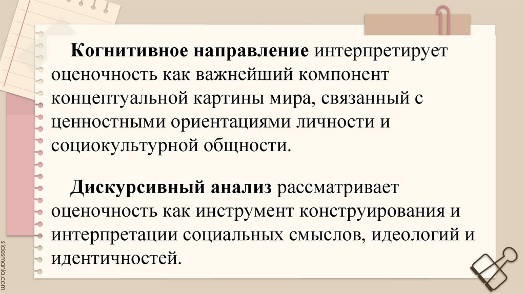 Когнитивное направление интерпретируетоценочность как важнейший компонент