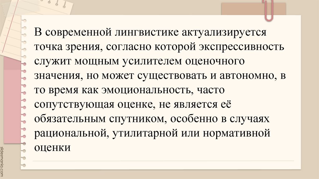 В современной лингвистике актуализируетсяточка зрения, согласно которой экспрессивность