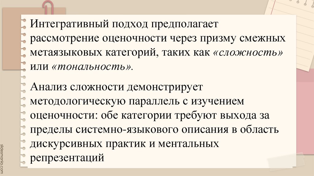Интегративный подход предполагаетрассмотрение оценочности через призму смежных