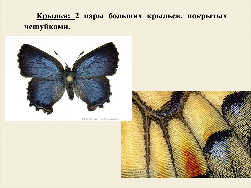 Крылья: 2 пары больших крыльев, покрытыхчешуйками.