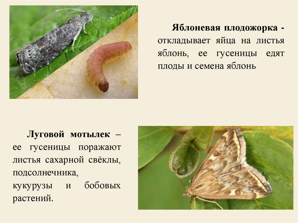 Яблоневая плодожорка откладывает яйца на листьяяблонь, ее гусеницы едят